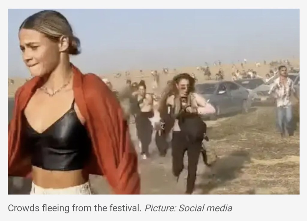 Other terrorists drove further into the country and came to a music festival, where many young people were dancing and enjoying themselves. They shot as many people as they could and grabbed and gangraped many of the young women, until they died, until their legs and pelvises were broken. The naked, lifeless bodies were then piled on trucks, some missing limbs or heads, and paraded around for everyone to see.