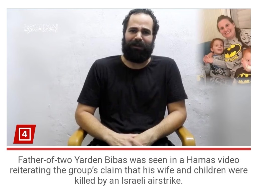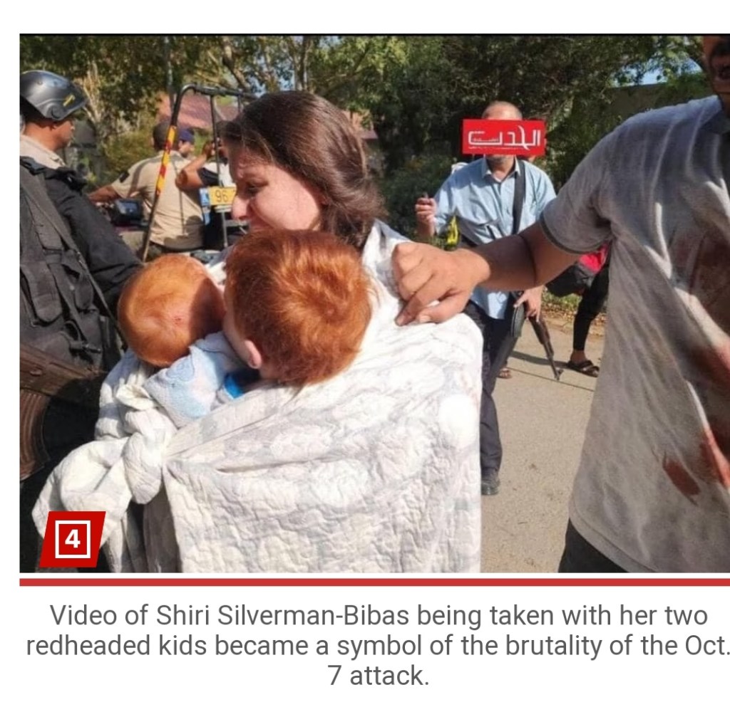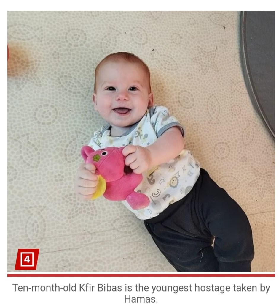 This video and the screenshots made the Bibas family the most famous hostages. Kfir, at nine months old at the time, is the youngest hostage of all. The following image has been shown all over the world.