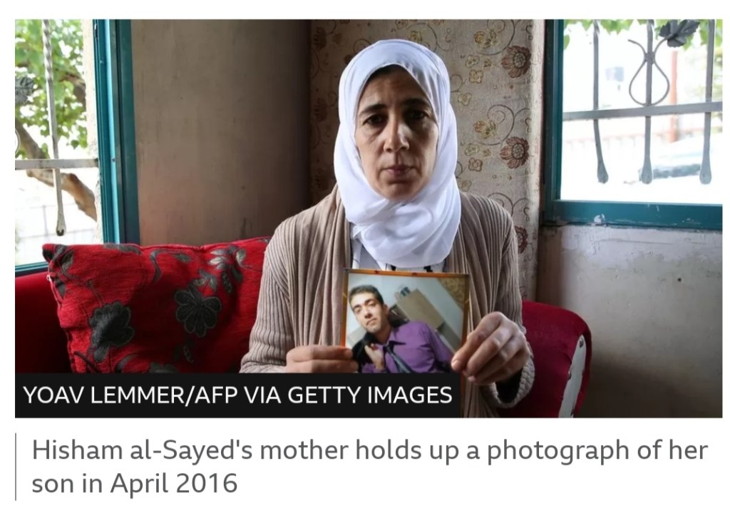 In 2022, Hamas released a video showing Hisham al-Sayed looking very sick, lying in a hospital bed with an oxygen mask and an IV drip. His Israeli ID card was shown lying open on the bed.