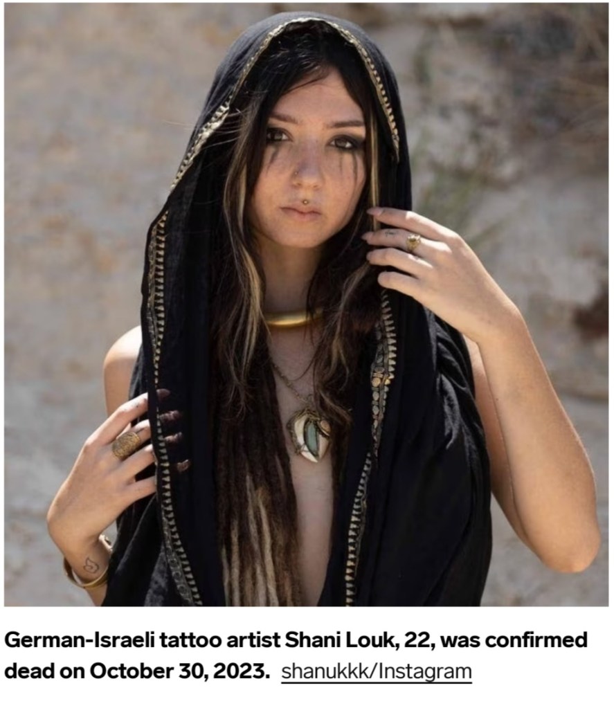 This beautiful, free spirit is Shani Louk. She is 22 years old and will stay 22 years old forever. She will not grow up, have children and experience everything life has to offer. Shani Louk was murdered on October 7, 2023, at the hands of crazed, bloodthirsty Hamas terrorists.