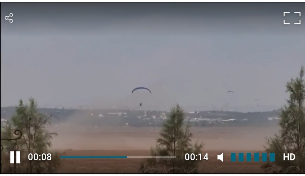 On October 7, Avigail Idan was three years old. She lived in kibbutz Kfar Aza with her father, Roee, her mother, Smadar, and her 2 siblings, Michael and Amalia. Roee Idan was a photojournalist for the news website Ynet. On the morning of October 7, he actually went outside with a camera and filmed the arrival of the terrorists in paragliders. This is a still from one of his videos, as published on Ynet: