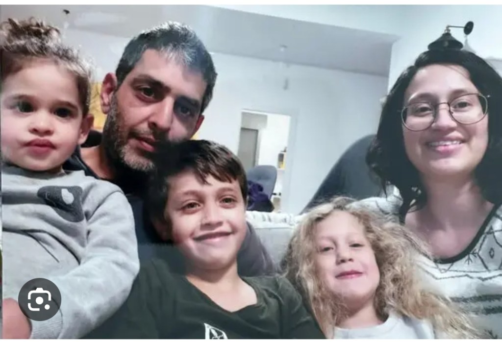 At the end of the video, Roee drops the camera and starts running. He runs home, grabs his wife and children, tells them to run, to hide, that terrorists are flooding into their kibbutz. But they would not get far. Hamas gunmen broke into their home at that very moment and opened fire. Smadar collapsed. The two older children ran and hid in a closet. Roee, who was holding Avigail, was shot too, and fell to the ground, covering Avigail with his body.