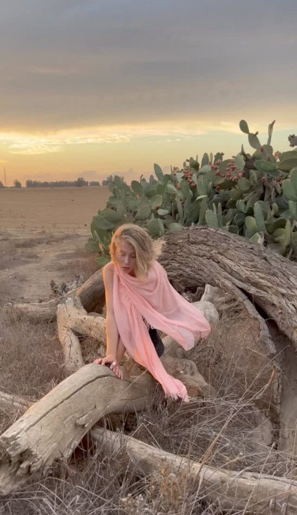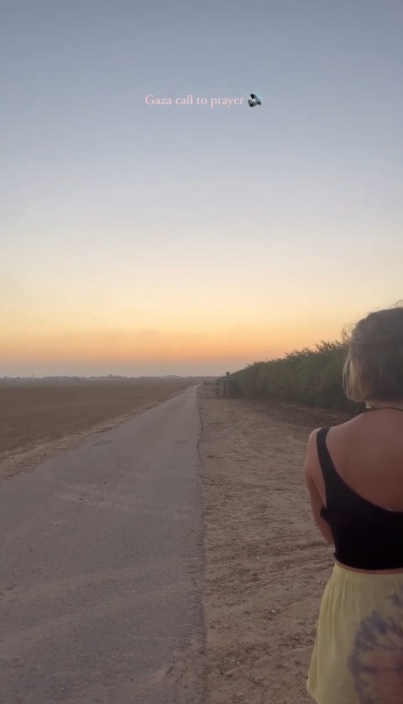 This last picture is a screenshot of a video posted on Instagram, of Carolin looking into the sunset and listening to the muezzin call from the mosque in nearby Gaza.