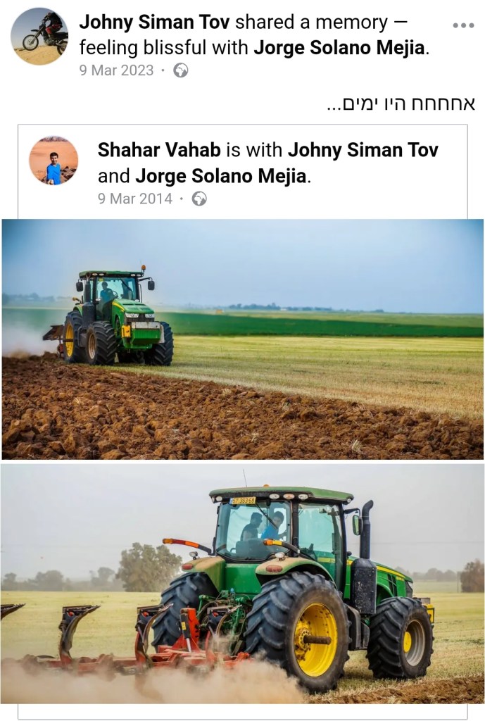 This is the last picture British photographer Danny Darlington took together with his friend, model and student Carolin Bohl. It is the last entry on his Instagram, now turned into a memorial page. He took this photo in kibbutz Nir Oz, where he and Carolin were staying with friends. I don’t know the exact day this photo was taken, but was not long before October 7, 2023.